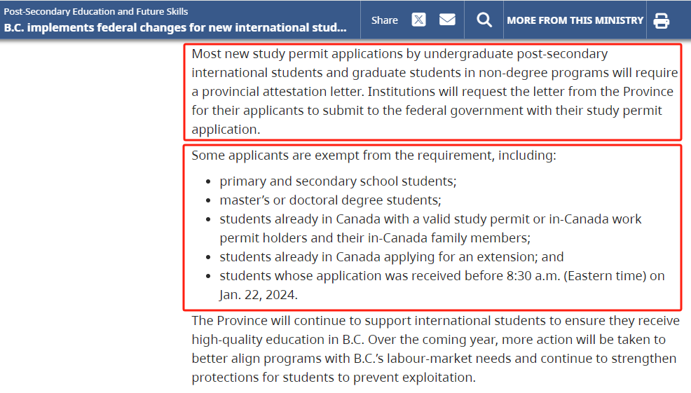 从2024年1月22日开始,除了豁免对象,大多数加拿大高校留学生,在提交学签申请时,都必须提供PAL。各省政府需在3月31日前明确PAL签发制度。