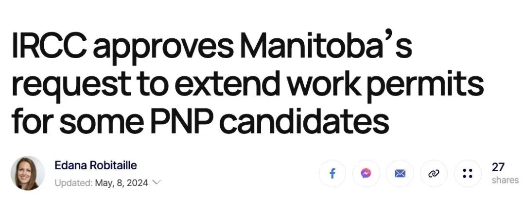 2024年5月8日,加拿大移民局官宣MPNP曼省省提名工签新政。